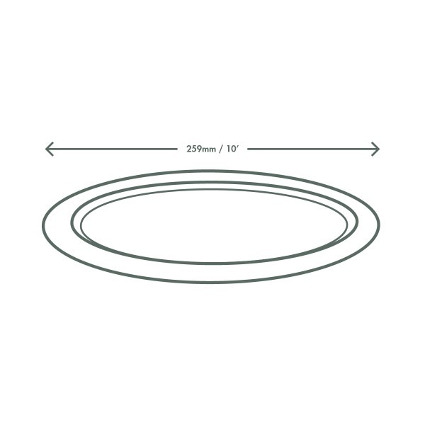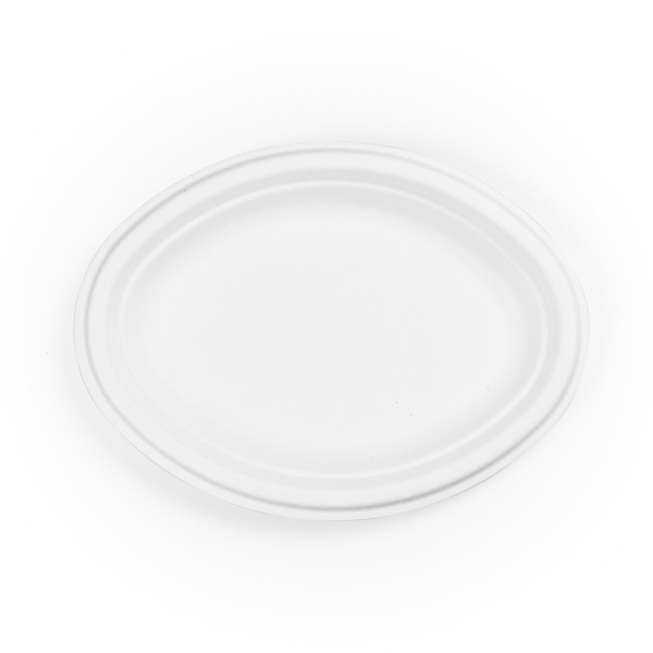 Stylish oval plate. Stronger than paper and polystyrene. Great for hot or cold, and sturdy enough to load up with food. Our moulded fibre uses reclaimed natural materials such as sugarcane, bamboo or wood pulp. Sleek white, embossed with Vegware. Award-winning quality by Vegware, made from plants. Made from recyclable materials.