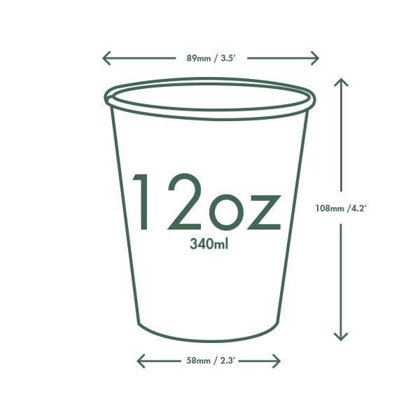 A home compostable 12oz single wall hot cup in our revamped Green Tree design! For coffee, tea and all hot drinks, or soup to go. Sustainably-sourced board, lined with a water-based lining. Crisp white board with tree in Vegware green. Award-winning quality, made from plants. Designed for home or industrial composting, recyclable in coffee cup recycling schemes – check your local options.