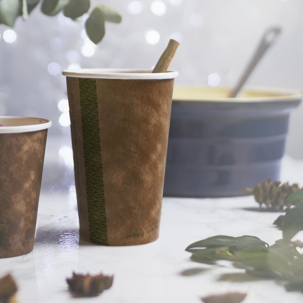 Single wall hot cup. Fits Vegware’s 89-Series lids. For coffee, tea and all hot drinks, or soup to go. Also ideal portion control for chips or fried treats. Sustainably-sourced board with a plant-based PLA lining. Brown kraft, with Vegware messaging in green. Award-winning quality by Vegware, made from plants. Designed for industrial composting; recyclable in coffee cup recycling schemes – check your local options.
