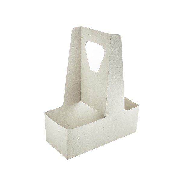 A handy tray for carrying two cups. sticker, or your own custom design.Made from recycled pulp. Pale unbleached grey. Award-winning quality by Vegware, made from plants. Designed for industrial composting, made from recyclable materials.
