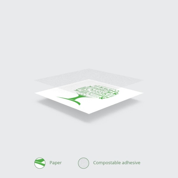 A 45mm round sticker. Great for sealing bags or paper wraps. Made from paper with a compostable adhesive. Part of the Green Tree collection. Award-winning quality by Vegware, made from plants. Commercially compostable where accepted.