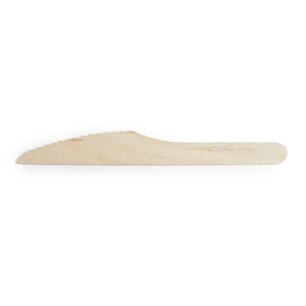 Sturdy wooden knife. Strong enough to set into crunchy meals – hot or cold. Excellent for takeout meals, table settings or catering events. Rustic style made from renewable birchwood. Award-winning quality by Vegware, made from plants. Designed for industrial composting.