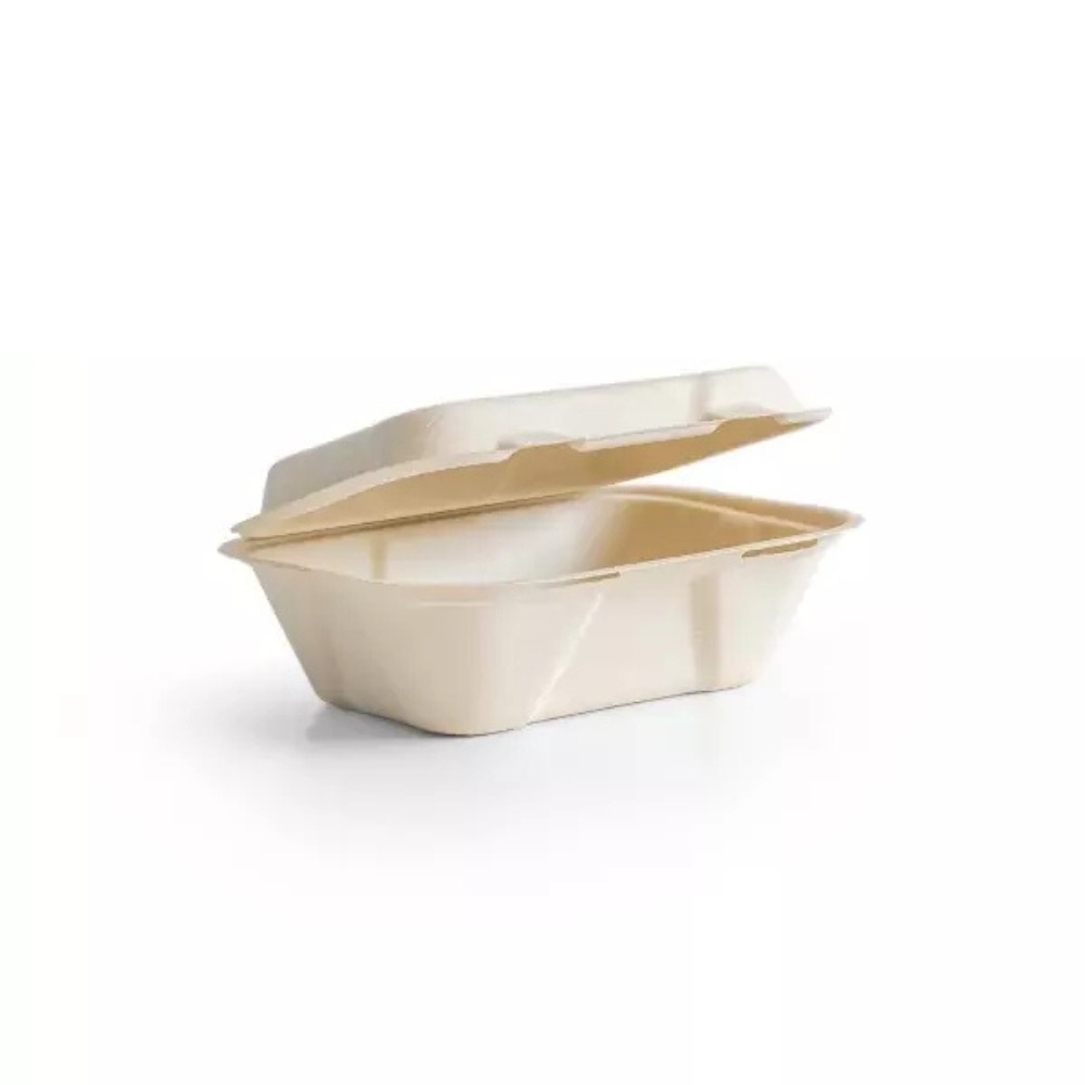 Practical and stylish clamshell, in Vegware Nourish moulded fibre. Doesn’t trap condensation, so hot food stays crispy. For hot or cold food to go – street food, fried rice, salads, or even sweet treats. Made from Vegware Nourish moulded fibre with no added PFAS. Our moulded fibre uses reclaimed natural material such as sugarcane, bamboo or wood pulp. Oatmeal colour for a natural look. Award-winning quality by Vegware, made from plants. Designed for home or industrial composting, made from recyclable materials.