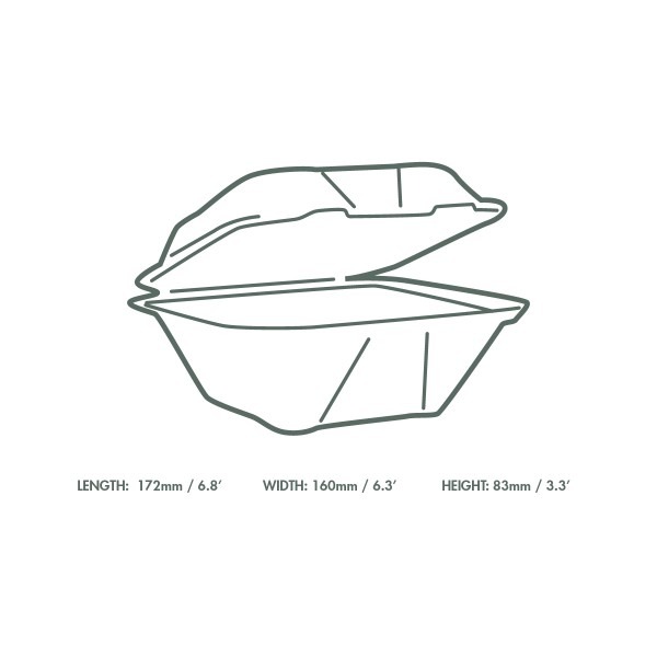 Practical and stylish burger clamshell, in Vegware Nourish moulded fibre. Doesn’t trap condensation so your burger bun won’t go soggy. The lid and base are equal depth, so when open form two trays. Perfect for hot or cold food to go but – you guessed it – especially burgers. Made from Vegware Nourish moulded fibre with no added PFAS. Our moulded fibre uses reclaimed natural material such as sugarcane, bamboo or wood pulp. White in colour for a fresh and bright look. Award-winning quality by Vegware, made from plants. Designed for home or industrial composting, made from recyclable materials.
