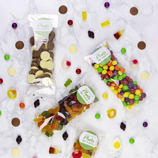 Clear home compostable bag, robust and versatile. Seal with a sticker or heat sealer. Great for slices of tray bakes, or seed and nut snacks. Made from NatureFlex, a clear greaseproof film made from wood pulp. Clear for visibility. Award-winning quality by Vegware, made from plants. Designed for home or industrial composting.