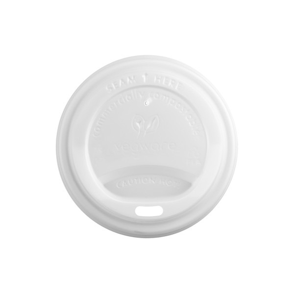Sip-through lid for Vegware’s 79-Series hot cups. A lid for hot coffees or teas to go. Point the ‘seam here’ to the inner cup seam. Made from CPLA, a renewable material made from plants. Off-white colour, embossed with Vegware messaging. Award-winning quality by Vegware, made from plants. Commercially compostable where accepted.