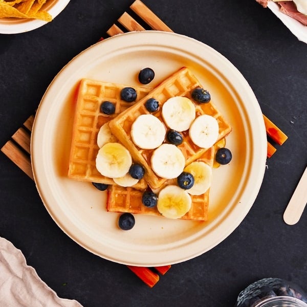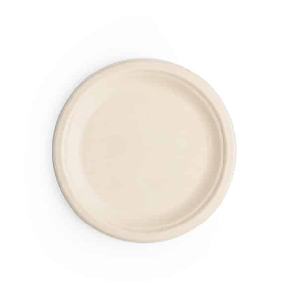 Practical and stylish plate, in Nourish moulded fibre. Stronger than paper, more attractive than polystyrene. Great for hot or cold, and sturdy enough to load up with food. Made from Vegware Nourish moulded fibre with no added PFAS. Our moulded fibre uses reclaimed natural material such as sugarcane, bamboo or wood pulp. Oatmeal colour for a natural look. Award-winning quality by Vegware, made from plants. Designed for home or industrial composting, made from recyclable materials.