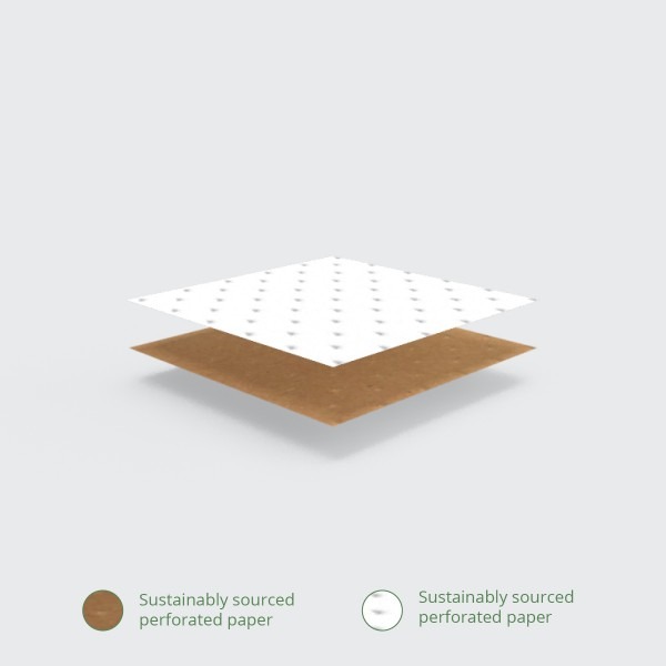 Perfect Therma presentation for paninis! Two layers of perforated paper retain heat but not condensation, so food stays hot and crispy. Suitable for hot cabinets up to 90°C. To eat simply tear along the dotted line to enjoy your hot treats tidily. Compatible with some panini grills. Great for paninis, wraps and toasted sandwiches. Sustainably-sourced paper. Brown colour with Vegware messaging in green. Award-winning quality by Vegware, made from plants. Made from recyclable materials.