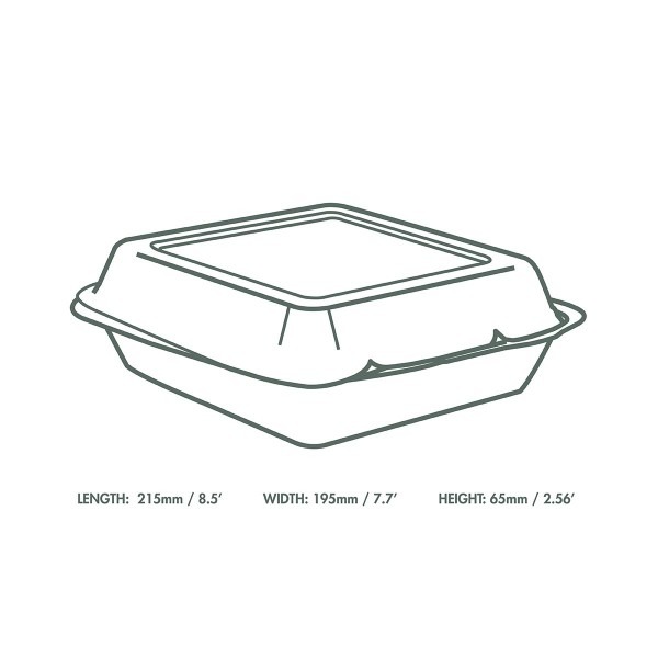 Practical and stylish clamshell. Doesn’t trap condensation, so hot food stays crispy. For hot or cold food to go – street food, curries, salads, or fried treats. Our moulded fibre uses reclaimed natural materials such as sugarcane, bamboo or wood pulp. Stylish white. Award-winning quality by Vegware, made from plants. Made from recyclable materials.