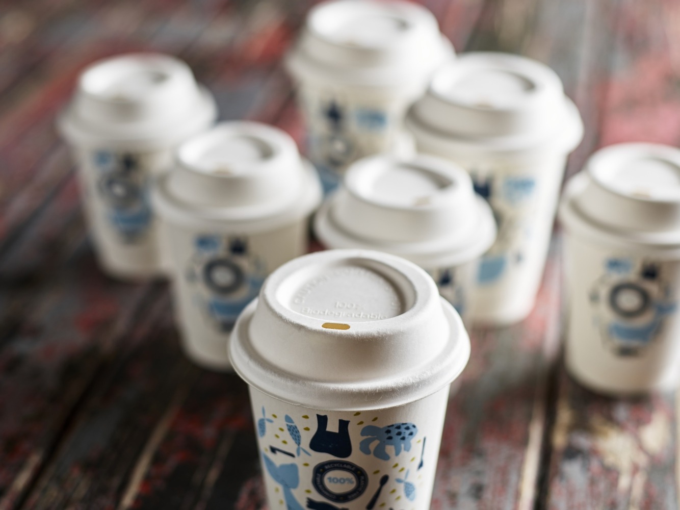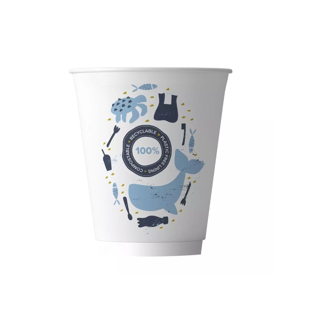 Amazing compostable and recyclable coated ocean friendly coffee cups! These beautiful paper coffee cups are lined with a special “Aqueous” water-based coating which means that as well as being 100% compostable, they can now also be recycled along with standard paper and cardboard.