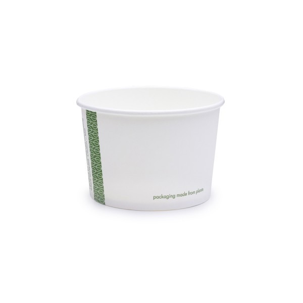 Versatile, leak-proof, sturdy round tub. Fits Vegware’s 90-Series lids. Ideal for serving ice cream! Also great for hot sauces or sides. Sustainably-sourced board with a plant-based PLA lining. Crisp white, with Vegware messaging in green. Award-winning quality by Vegware, made from plants. Designed for industrial composting, made from recyclable materials.