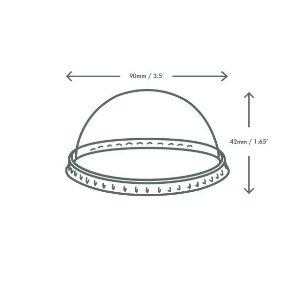 A clear domed lid to fit Vegware’s 90-Series soup containers. Great presentation for heaps of ice cream toppings, or colourful cold salads. Made from PLA, a renewable material made from plants. Clear for visibility. Award-winning quality by Vegware, made from plants. Commercially compostable where accepted.