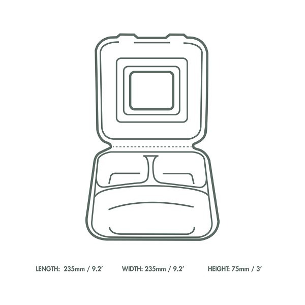 Practical and stylish 3-compartment clamshell. Doesn’t trap condensation, so hot food stays crispy. For hot or cold food to go – street food, curries, salads, or fried treats. Our moulded fibre uses reclaimed natural materials such as sugarcane, bamboo or wood pulp. Stylish white. Award-winning quality by Vegware, made from plants. Made from recyclable materials.