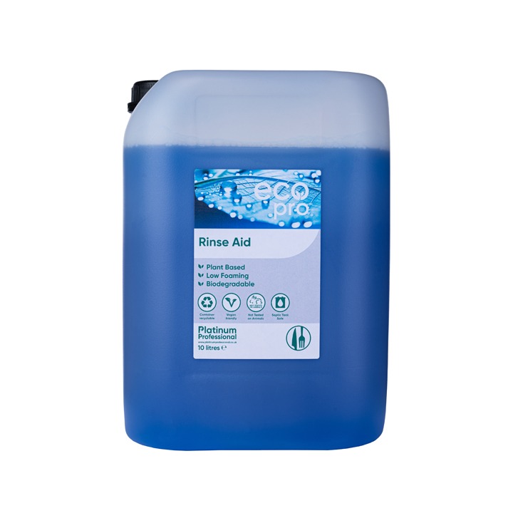 Available in 5L and 10L containers, Eco Pro Rinse Aid is ideal for cafes, restaurants, and commercial kitchens.