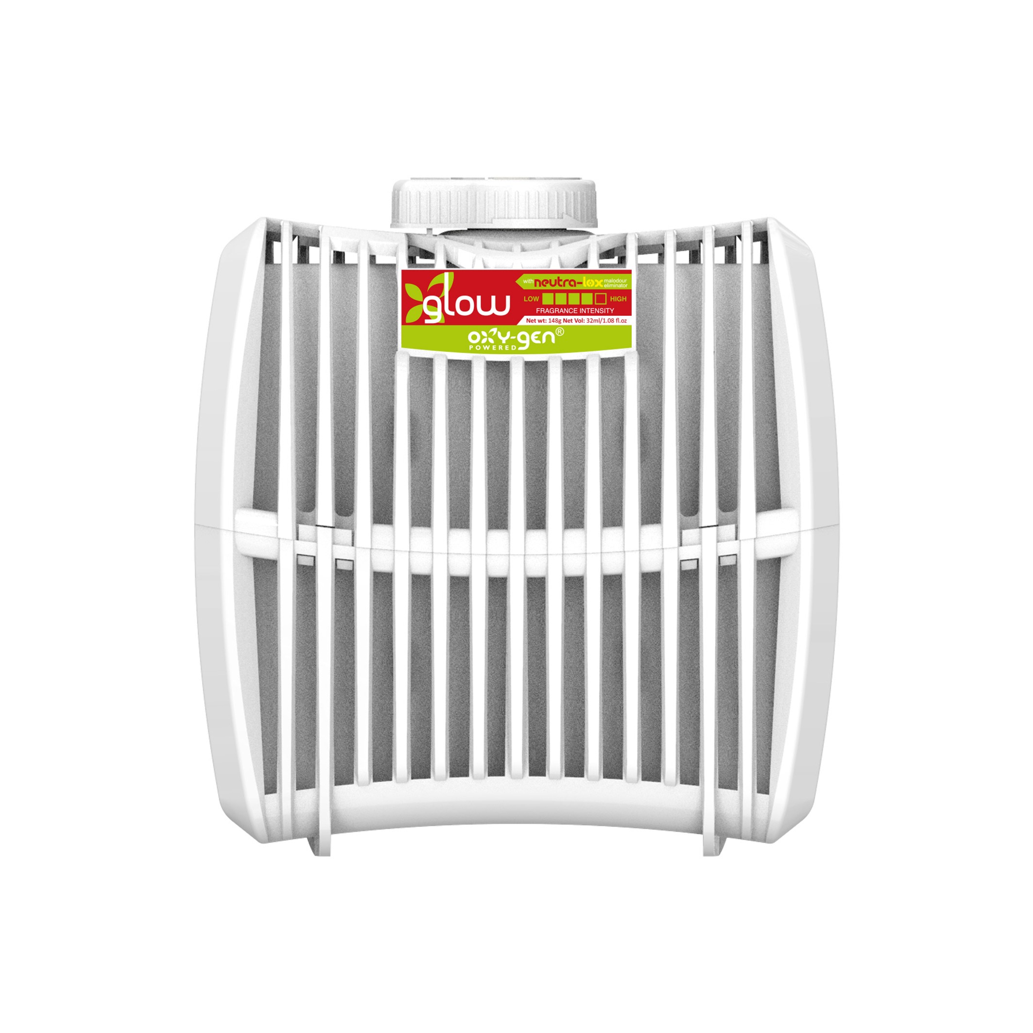 Glow, a fresh, juicy black cherries scent with a hint of almond, plum, vanilla and cinnamon spice. All Oxygen-Pro fragrances contain Neutra-lox, and so unlike other systems that only mask odours, Oxygen-Pro fragrances eliminate bad odours, and can cover an area of up to 6000ft3. • Can be programmed to work for 30 days for high intensity, 60 for normal intensity or 90 days for low intensity. • Fragrances available: Glow / Adore / Spa