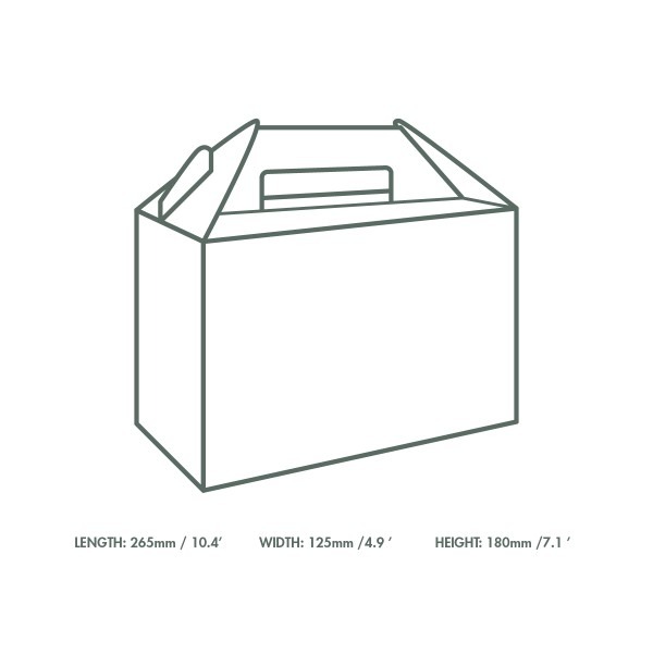 Sturdy fold-out card box with carry handles. Easy to assemble. Perfect for picnics or meals to go. Made from sustainably-sourced board. Classic brown colour. Award-winning quality by Vegware, made from plants. Designed for industrial composting, made from recyclable materials.